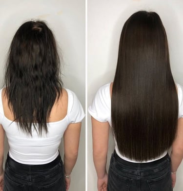 Nos extensions en nano capsules sont 100 % naturelles, légères et discrètes. Elles apportent volume, longueur et densité, avec une tenue moyenne de 4 à 6 mois selon l’entretien et la repousse naturelle. Le rendu est très naturel, confortable et facile à coiffer.